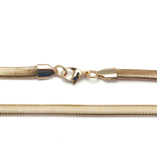cadena Snake (o Clapton aplanada) - es de acero quirúrgico 316L con baño dorado. Medidas aproximadas: 3MM 45CM/50CM