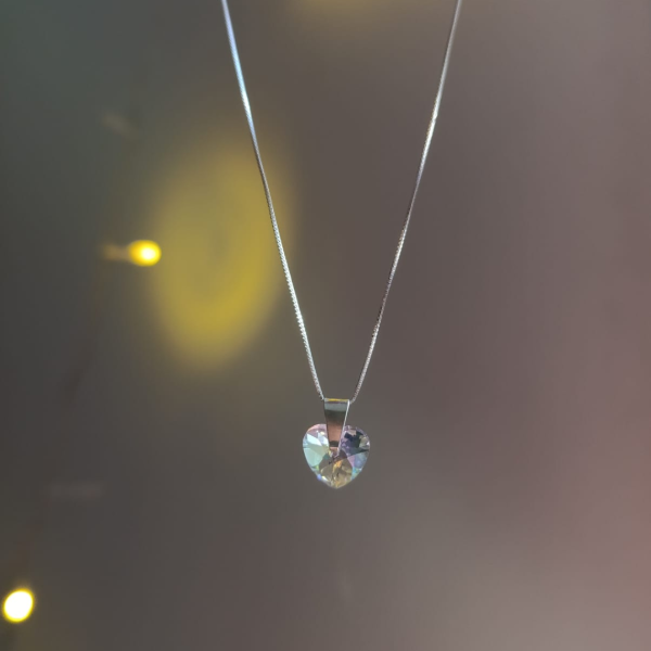 cadena de Plata 925 - modelo Veneciana (45CM) con dije de corazón rosa tornasolado.